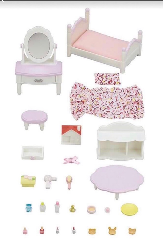 The bedroom & vanity set is a perfect furniture set to add to your calico critters house.